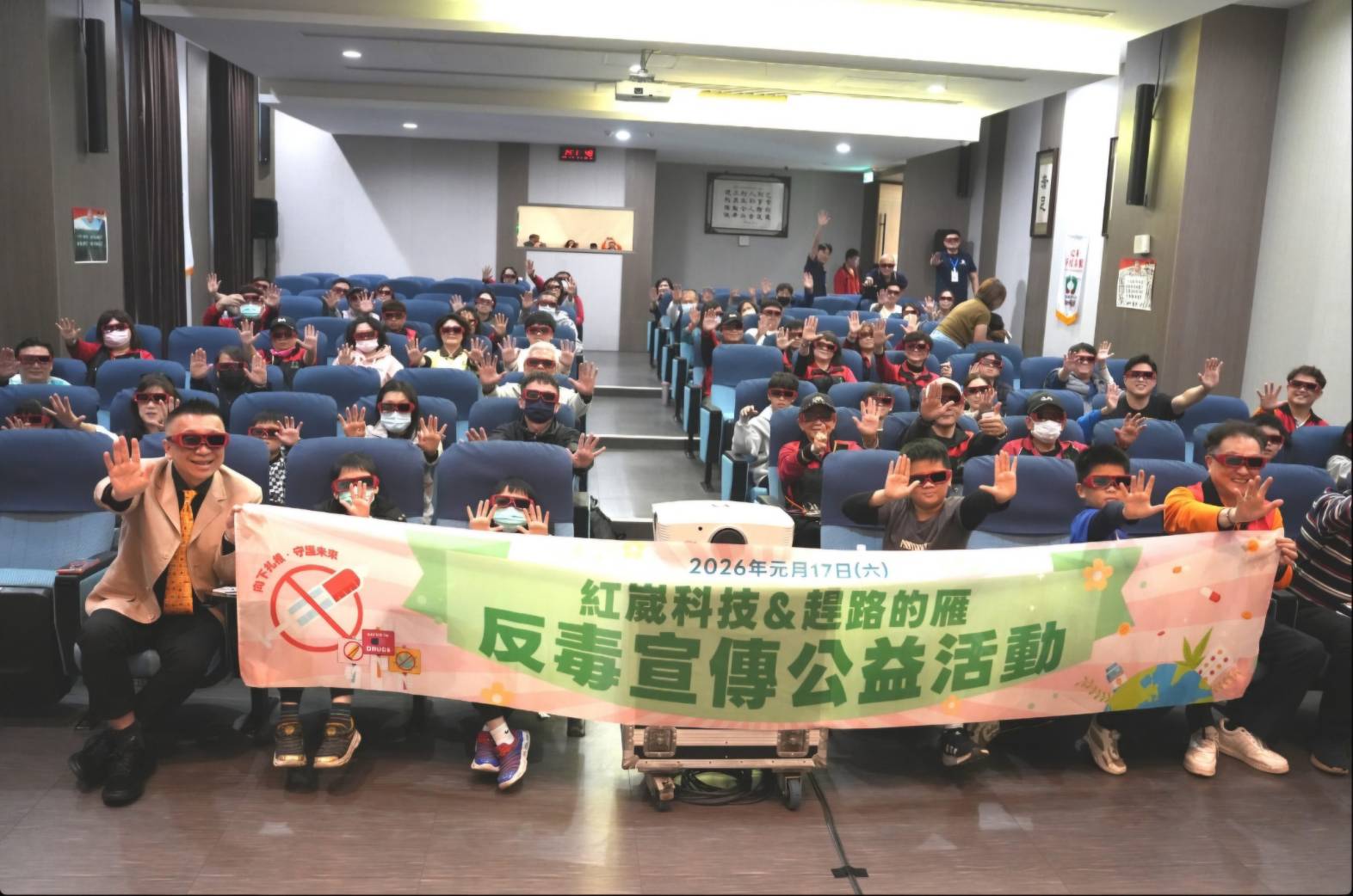 紅崴科技特與社團法人中華趕路的雁全人關懷協會、中華民國多層次傳銷商業同業公會與台南市青年杏林醫學教育協會聯手推動反毒教育,在紅崴科技總部舉辦「反毒宣傳公益活動」,北中南的民眾共同參與這場盛會,透過觀賞以色列3D電影、真實事件改編的本土電影《宇裂芯沉》與識別仿真毒品、有獎徵答等活動、以提升社會大眾識毒、拒毒的意識。