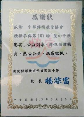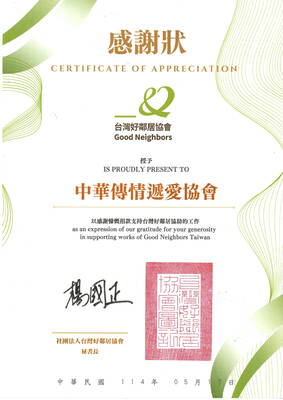 114.05.23 台灣好鄰居協會致贈捐助感謝狀